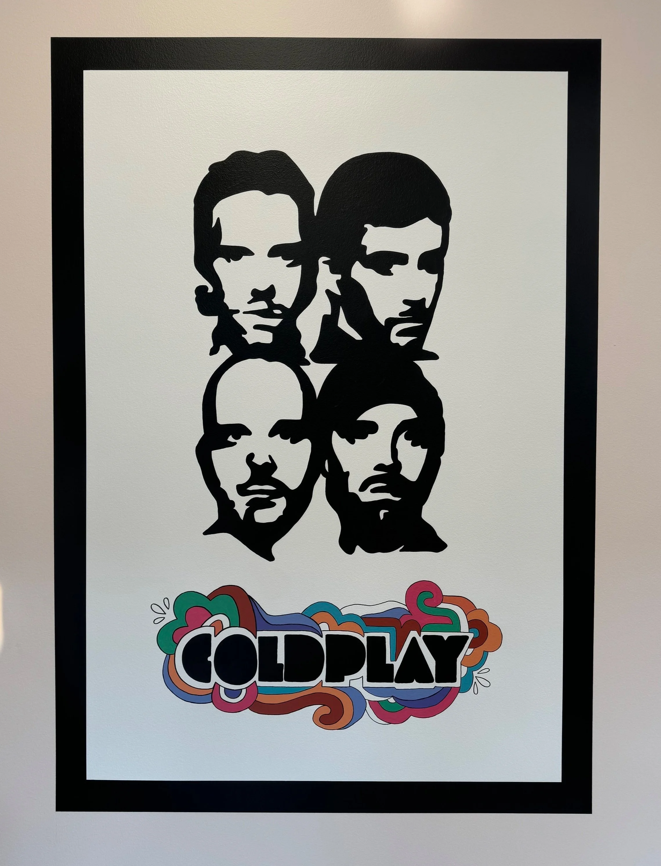 These music posters were heavily inspired by Bob Dylan’s poster. I used the same black & white with pop of the color palette for the rest of the posters to be cohesive and the black border gives them the “framed” look.